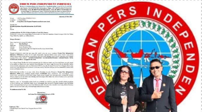 Presidium Forum Pers Independent Indonesia (FPII) telah melayangkan surat pegaduan ke Kepala Kepolisian Republik Indonesia Jendral (Pol) Drs, Listyou Sigit Prabowo,M.Si,. atas dugaan penganiayaan dan kekerasan Terhadap Anak Nomor:033/Presidium-FPII/V/2024.