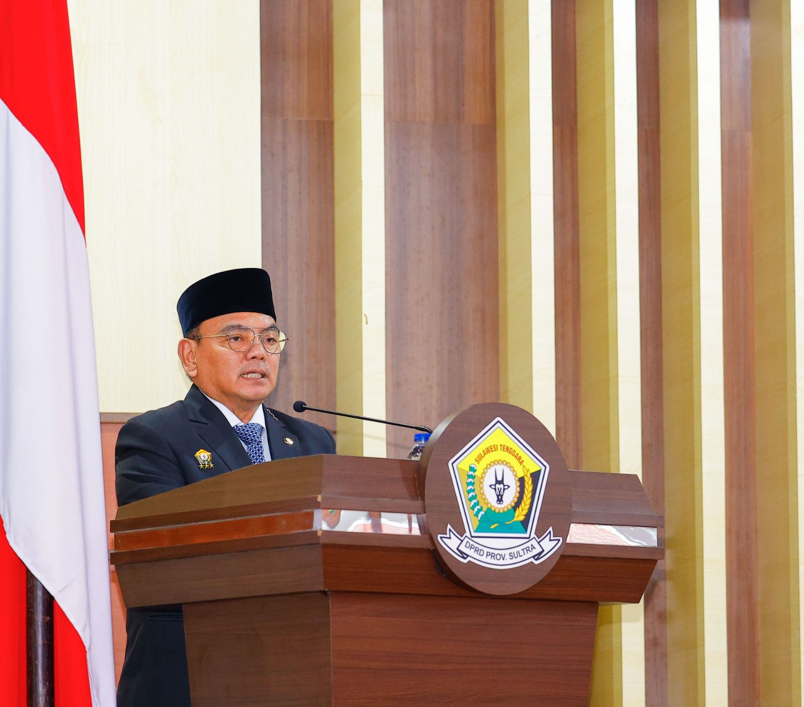 Kendari – Penjabat (Pj) Gubernur Sulawesi Tenggara (Sultra), Andap Budhi Revianto, menyampaikan pidato Pengantar Nota Keuangan dan Rancangan Peraturan Daerah (Ranperda) tentang Anggaran Pendapatan dan Belanja Daerah (APBD) Provinsi Sultra Tahun Anggaran (TA) 2025 dalam Rapat Paripurna DPRD Provinsi Sultra, Senin (25/11/2024)